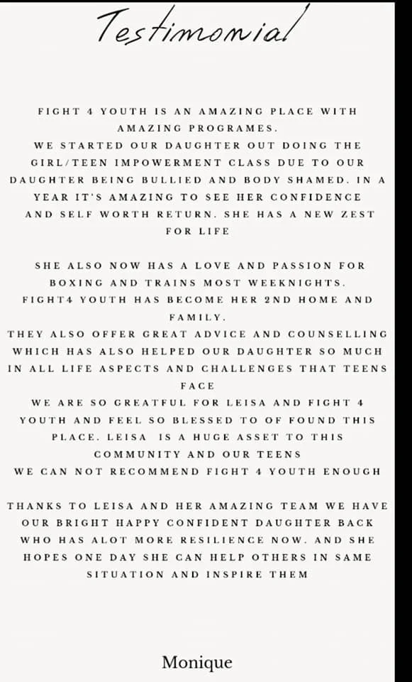 The Queensland Government provided Fight 4 Youth with funding through the Active Women & Girls initiative, to enable Queenslander women and girls to participate in sport and recreation activities.